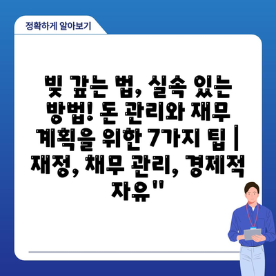 빚 갚는 법, 실속 있는 방법! 돈 관리와 재무 계획을 위한 7가지 팁 | 재정, 채무 관리, 경제적 자유”